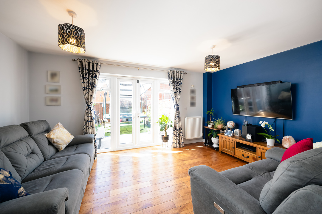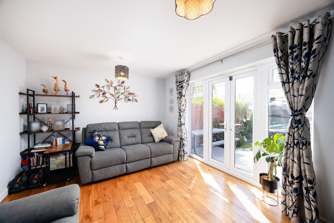 The lounge is located to the rear of the property and benefits from having French style patio doors leading into the rear garden. Hardwood flooring.