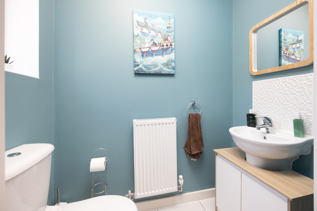 The family bathroom comprises panelled bath with shower over, low level w.c. wash hand basin with mixer taps, complementary tiling, heated towel rail. The ensuite comprises a low-level WC, wash hand basin, shower cubicle, heated towel rail, extractor fan. Guest cloakroom located on the ground floor.