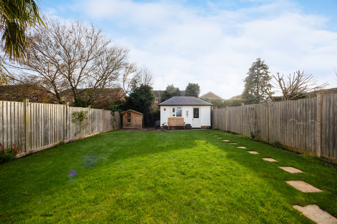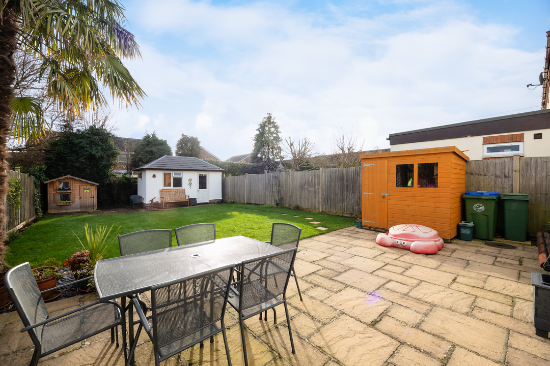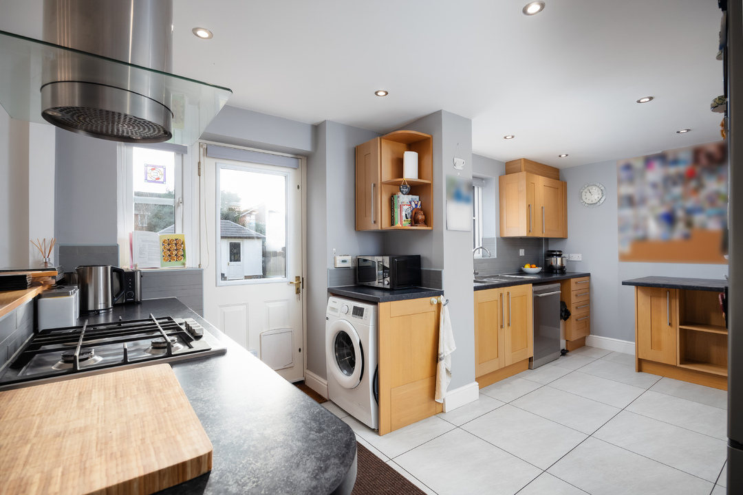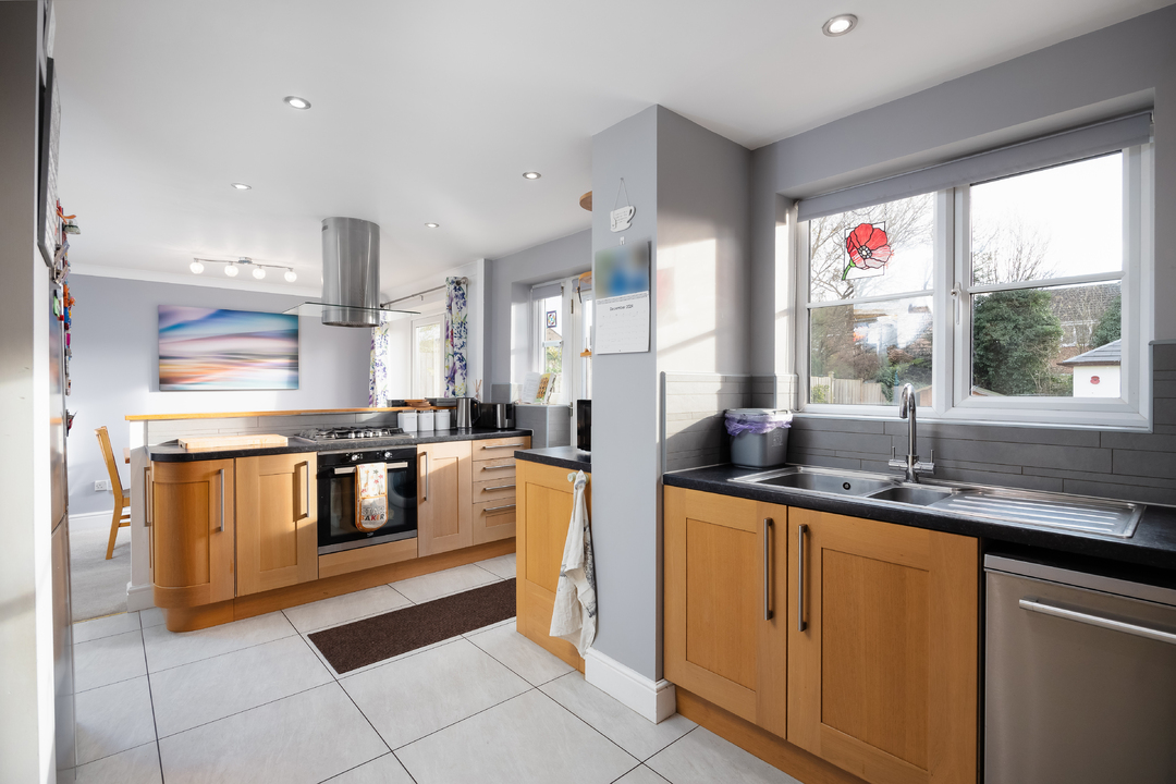A driveway provides convenient off-street parking, while the part-converted garage enhances the kitchen's footprint, creating a spacious culinary hub while retaining a practical storage area at the front.