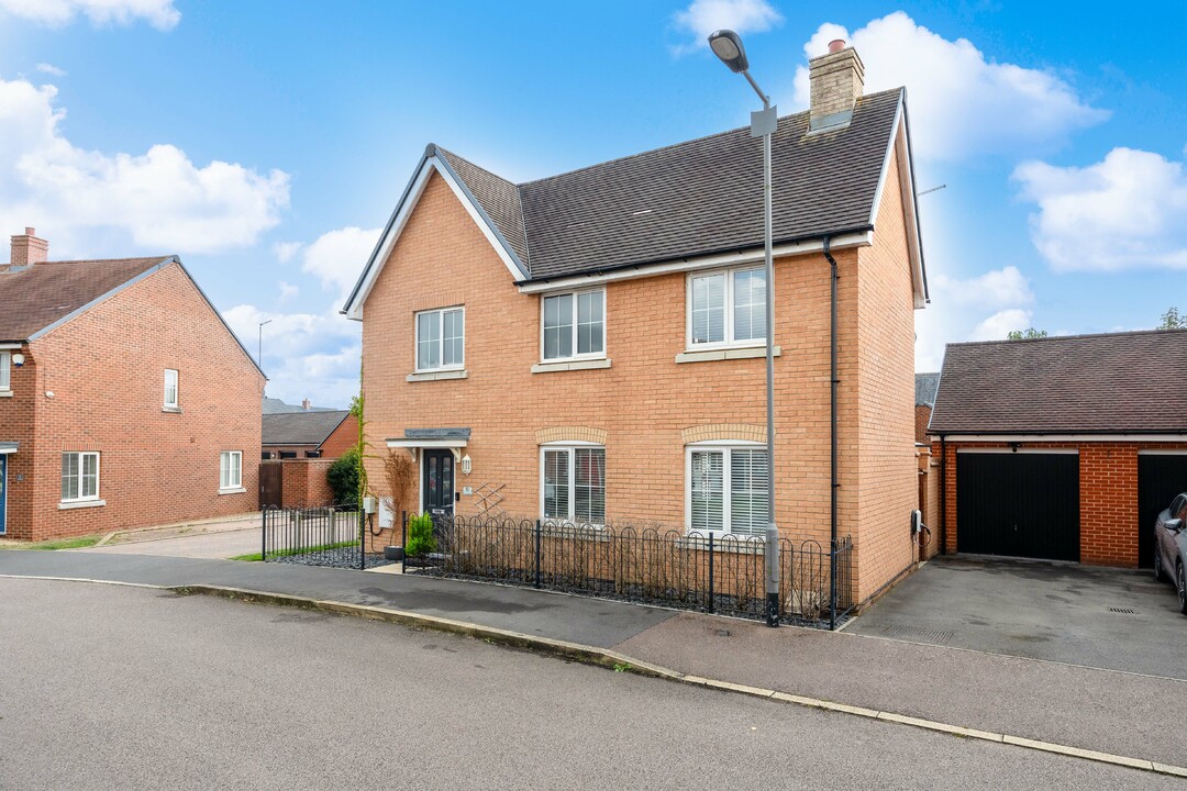 A modern three-storey family home located in the popular Armstrongs Fields area of Kingsbrook, just a short walk from green open spaces, new schools, and local amenities. The property offers well-balanced accommodation across three floors. On the ground floor, there’s a bright kitchen/breakfast room, a cloakroom, and a generous lounge with French doors leading out to the enclosed garden. On the first floor are two double bedrooms, one of which benefits from Jack and Jill access to the main bathroom. The top floor is dedicated to an impressive master bedroom suite, complete with en suite shower room and storage. Outside, there’s a private rear garden and a driveway to the side offering off-road parking.